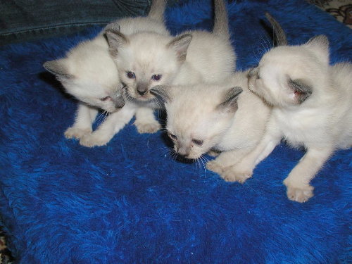 Alle 4 Thaikätzchen sind schon mit 5 Wochen bildhübsch und sehr selbstbewußt.